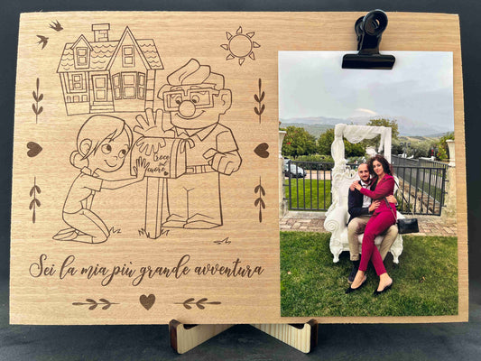 Portafoto in legno con dedica incisa e molletta per appendere i tuoi momenti di felicità